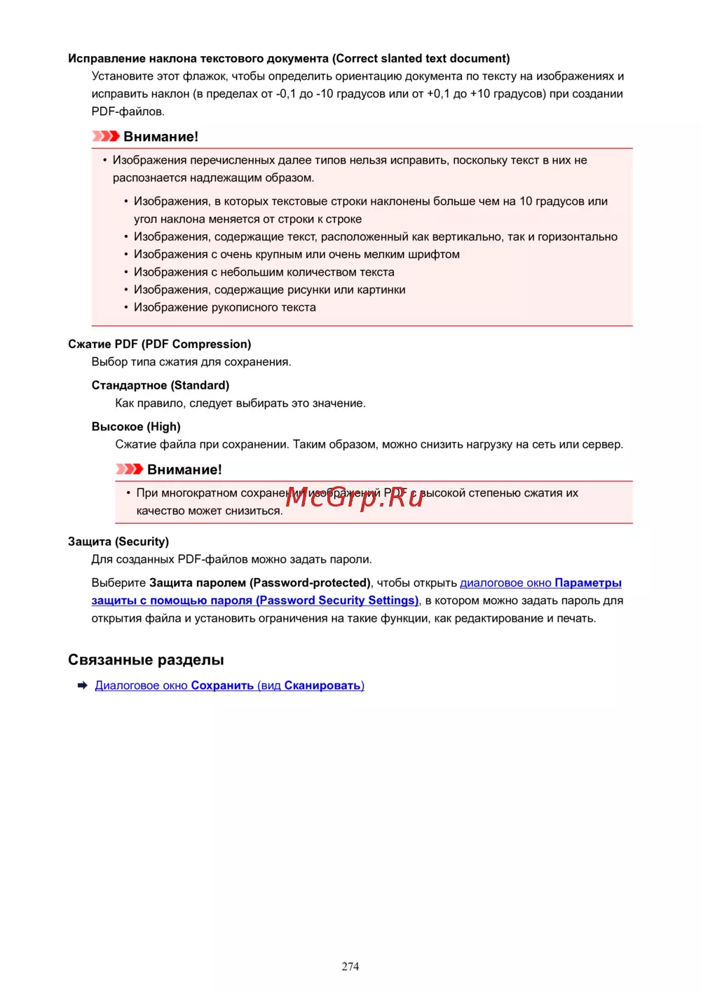Canon MG4140 — исправление наклона текста и сжатие PDF-документов [274/337]