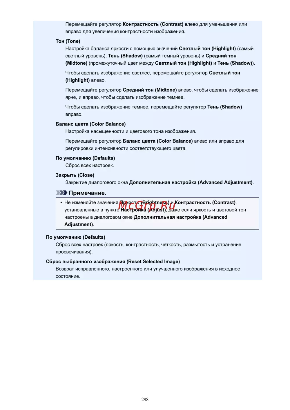 • Не изменяйте значения Яркость (Brightness) и Контрастность (Contrast),