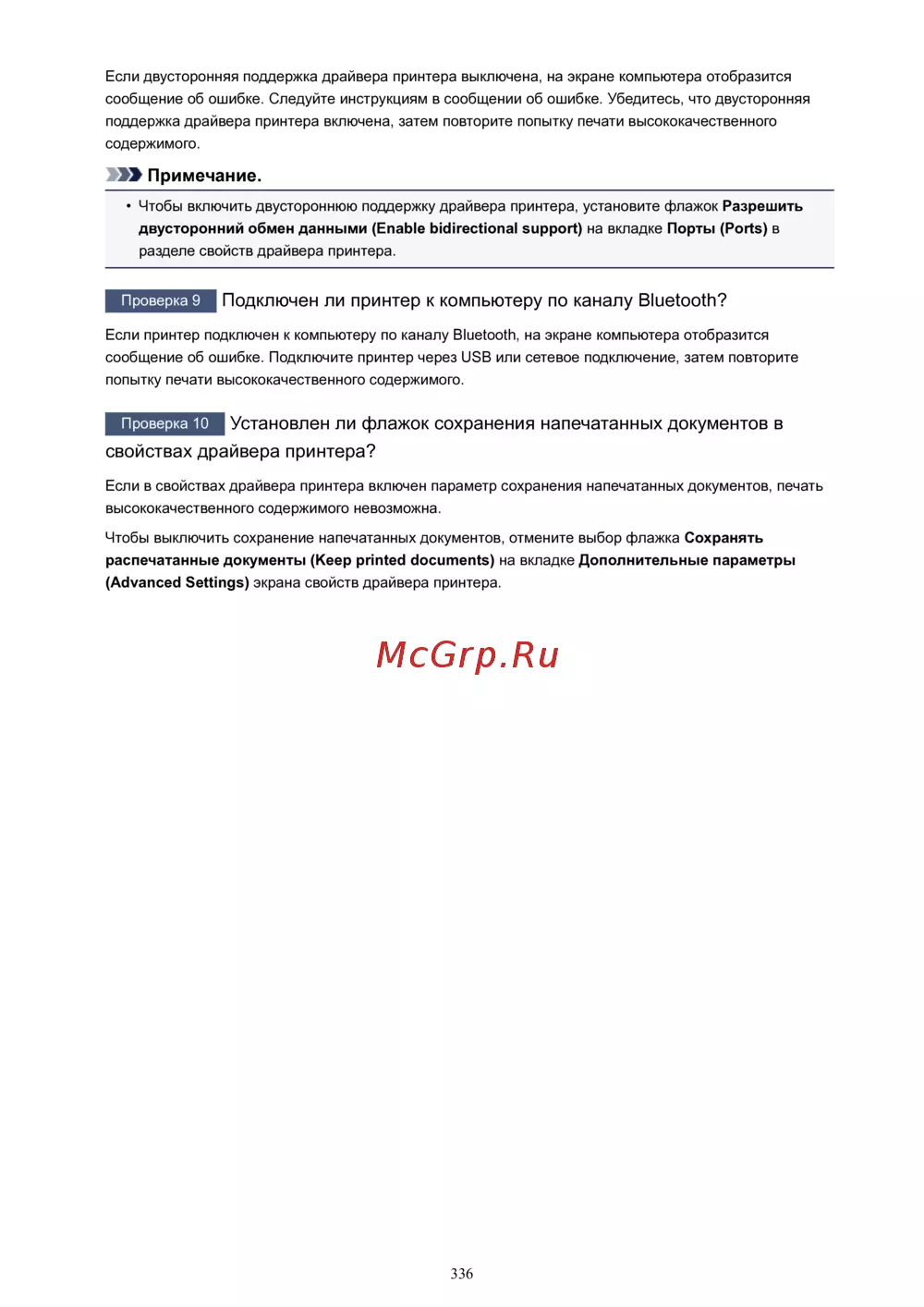 - Пытаетесь ли вы распечатать высококачественное содержимое для которого необходимы размеры бумаги не поддерживаемые принтером p.335
