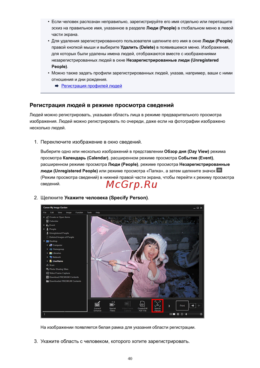 Canon MG4140 [40/337] Укажите область с человеком которого хотите зарегистрировать
