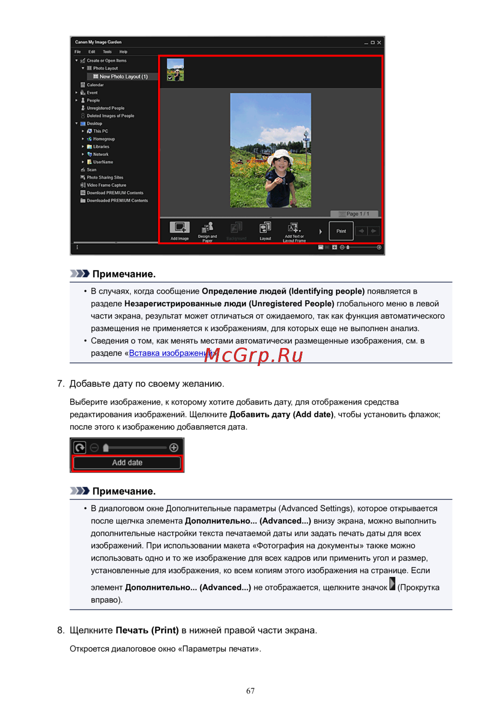 Canon MG4140 — как редактировать изображения и добавлять дату в документах [67/337]