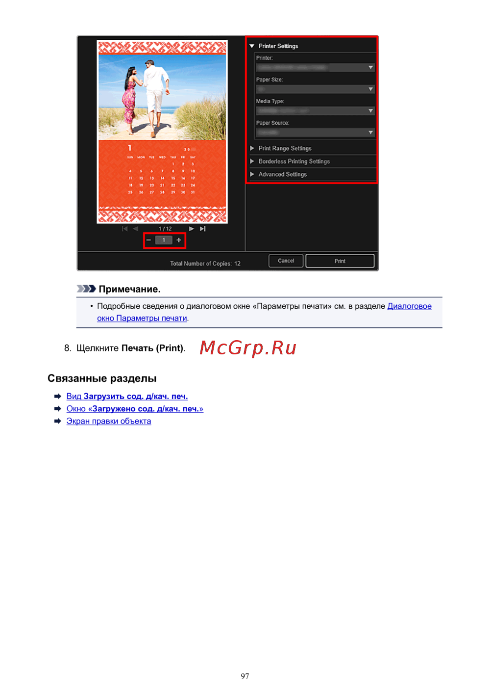 - Диалоговое окно параметры печати p.319