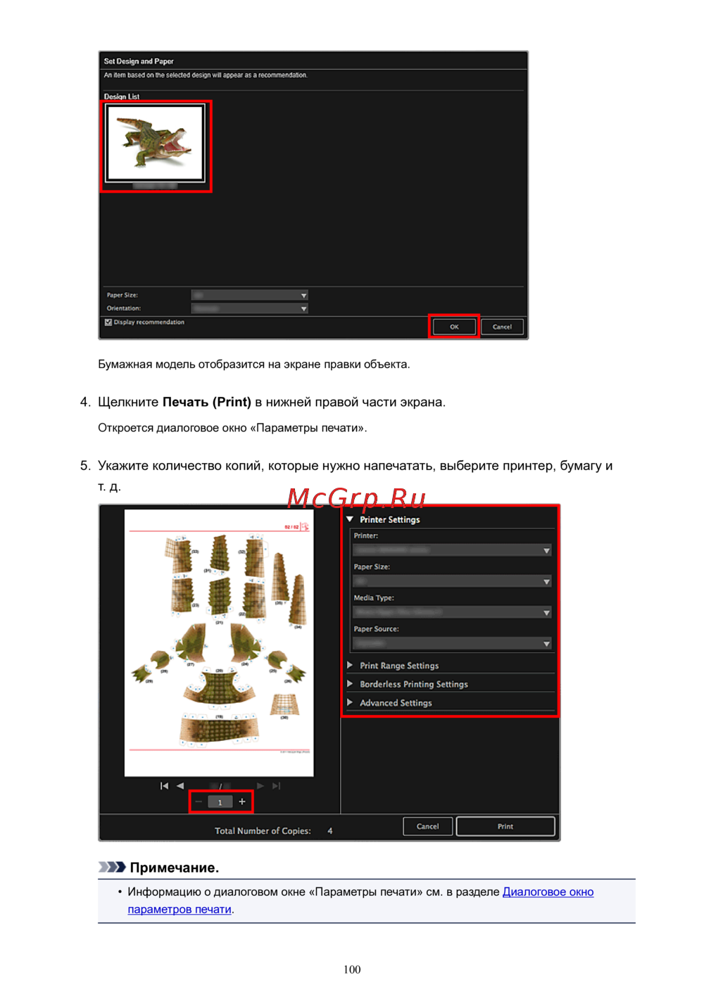 Информацию о диалоговом окне «Параметры печати» см. в разделе Диалоговое окно