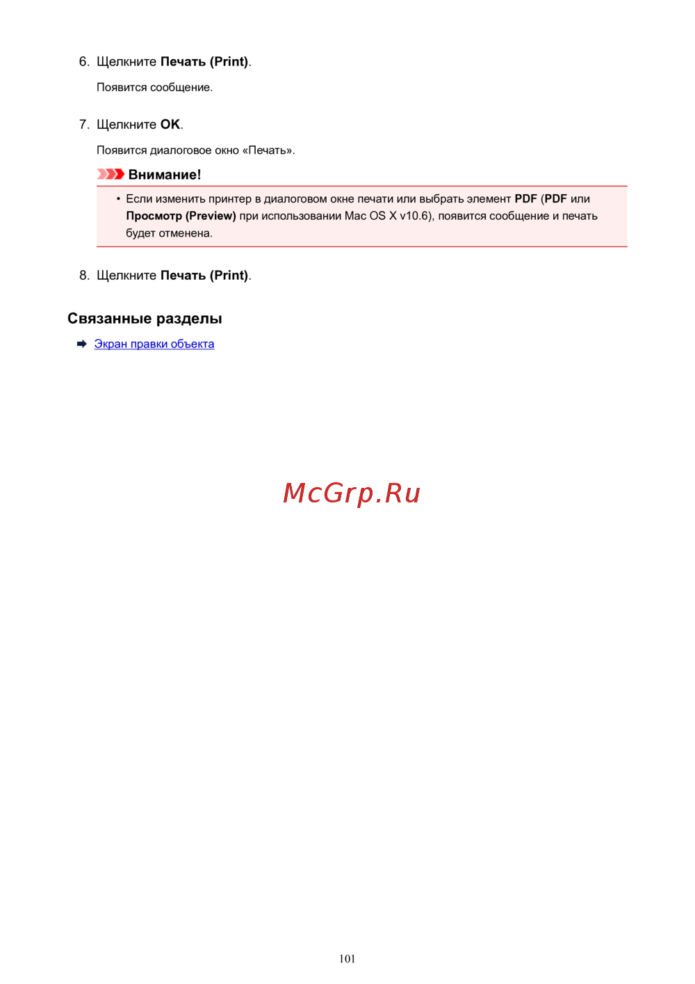 Просмотр (Preview) при использовании Mac OS X v10.6), появится сообщение и печать