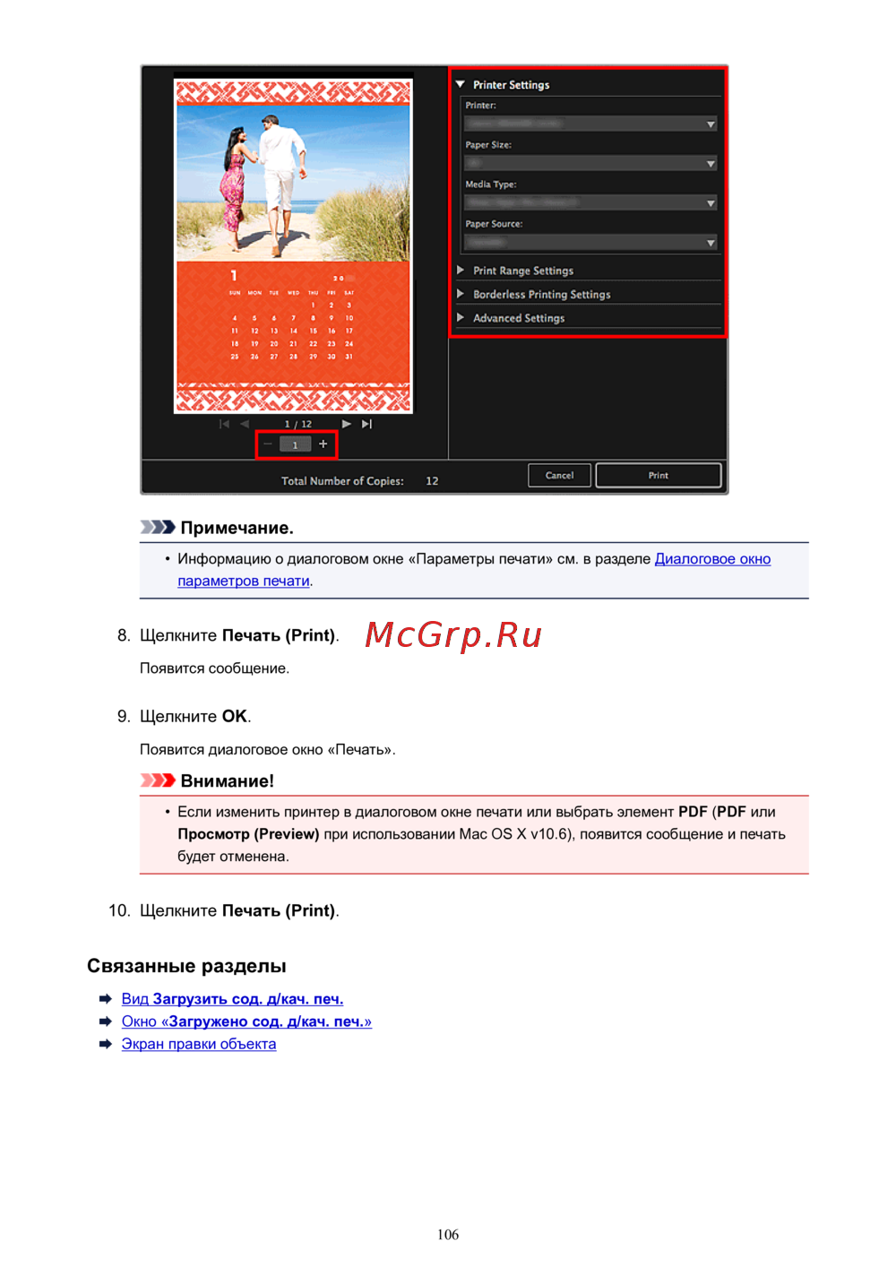 Просмотр (Preview) при использовании Mac OS X v10.6), появится сообщение и печать
