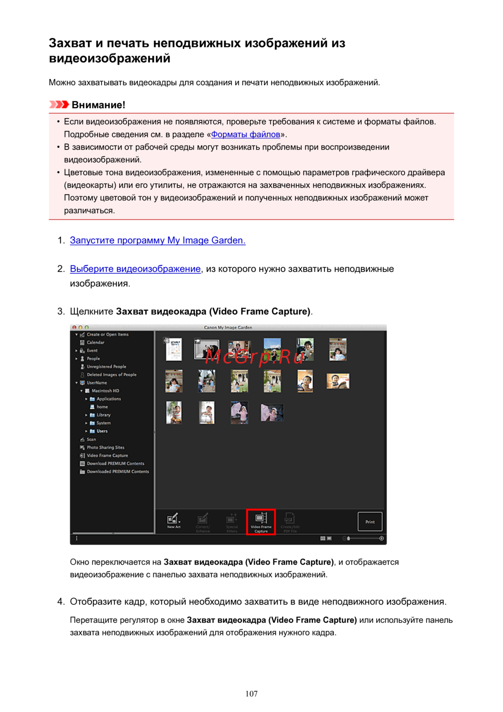 - Захват и печать неподвижных изображений из видеоизображений 107 p.3