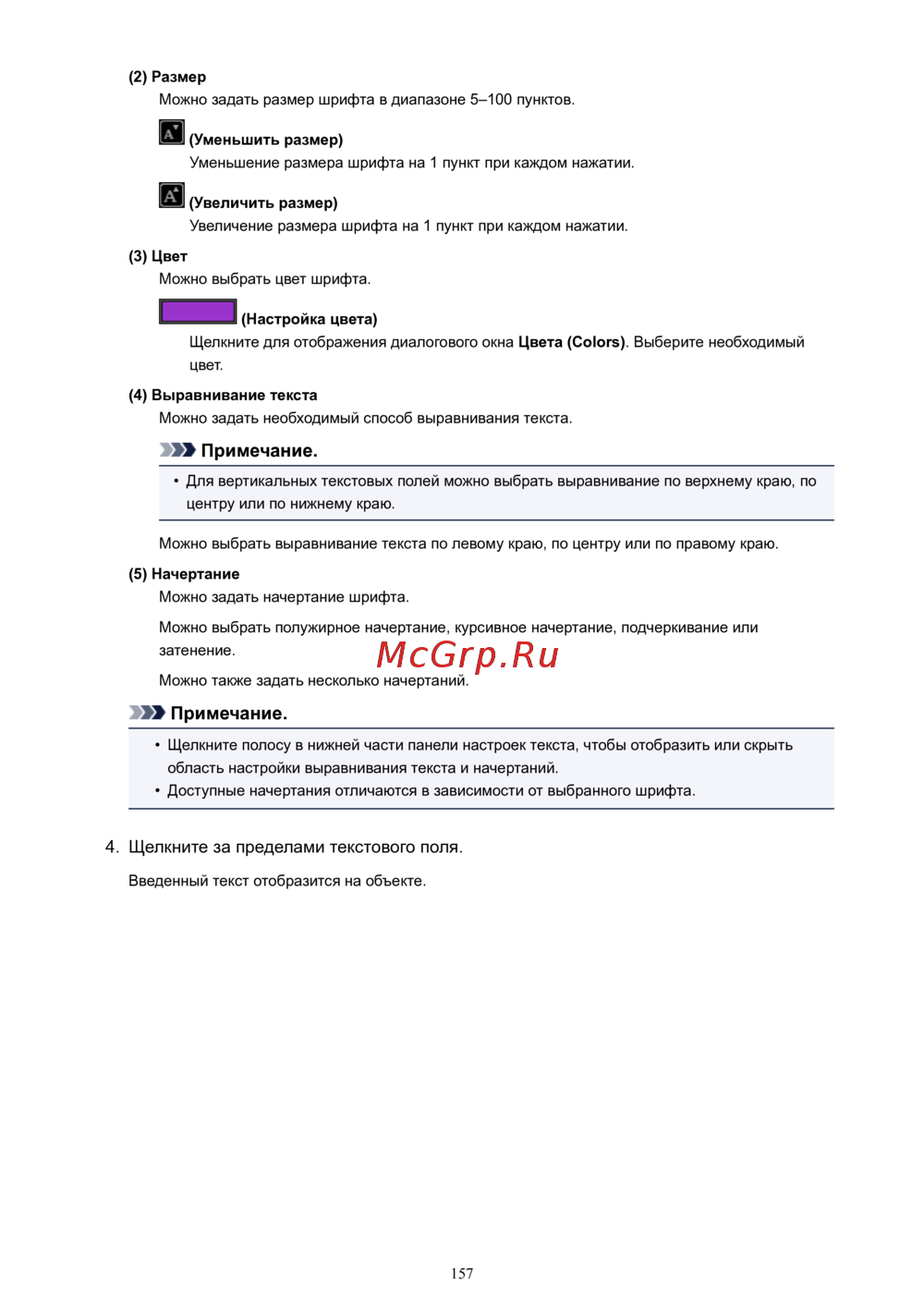 Canon MG4140 — настройка шрифта: размер, цвет и выравнивание текста [157/339]
