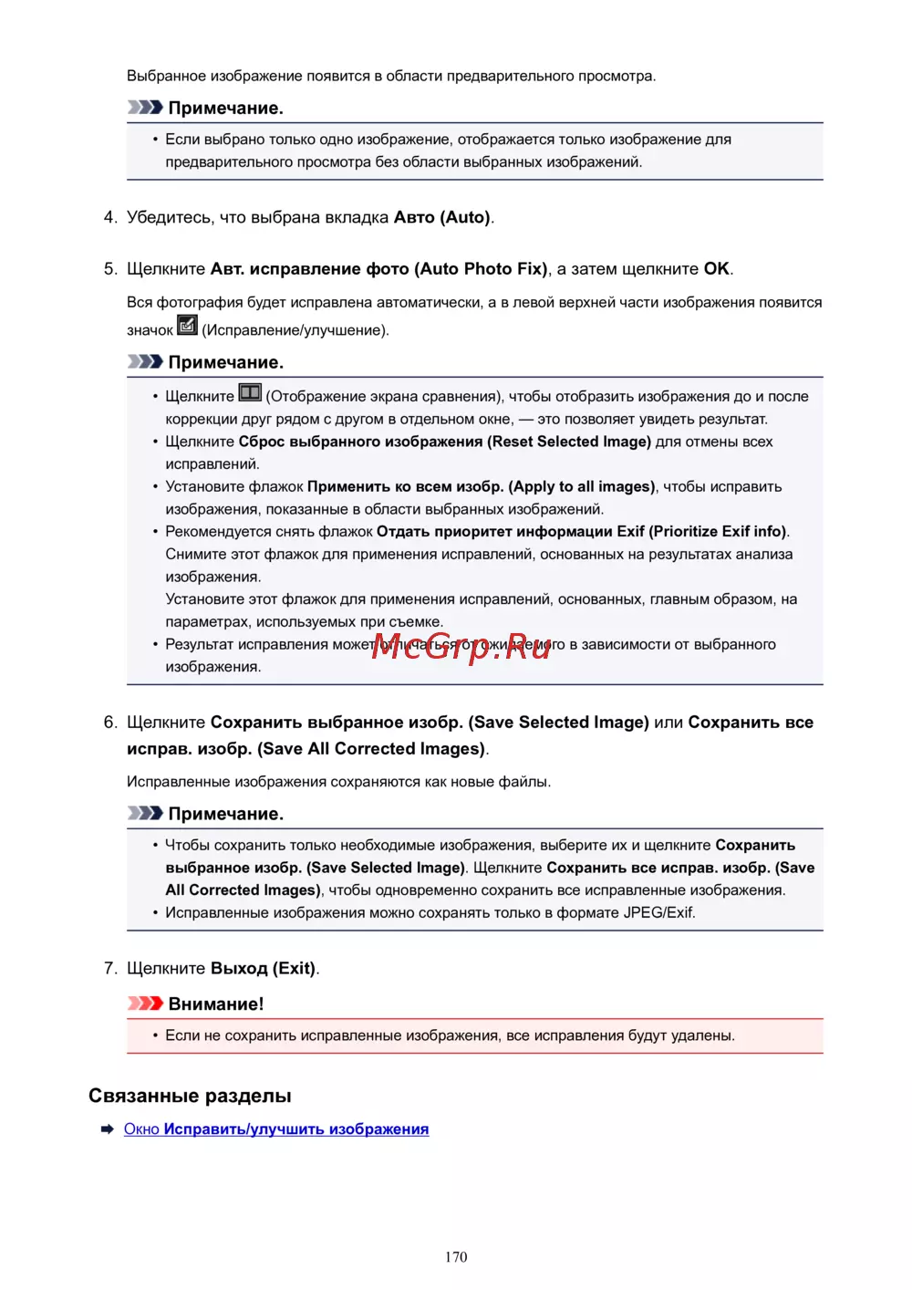 выбранное изобр. (Save Selected Image). Щелкните Сохранить все исправ. изобр. (Save