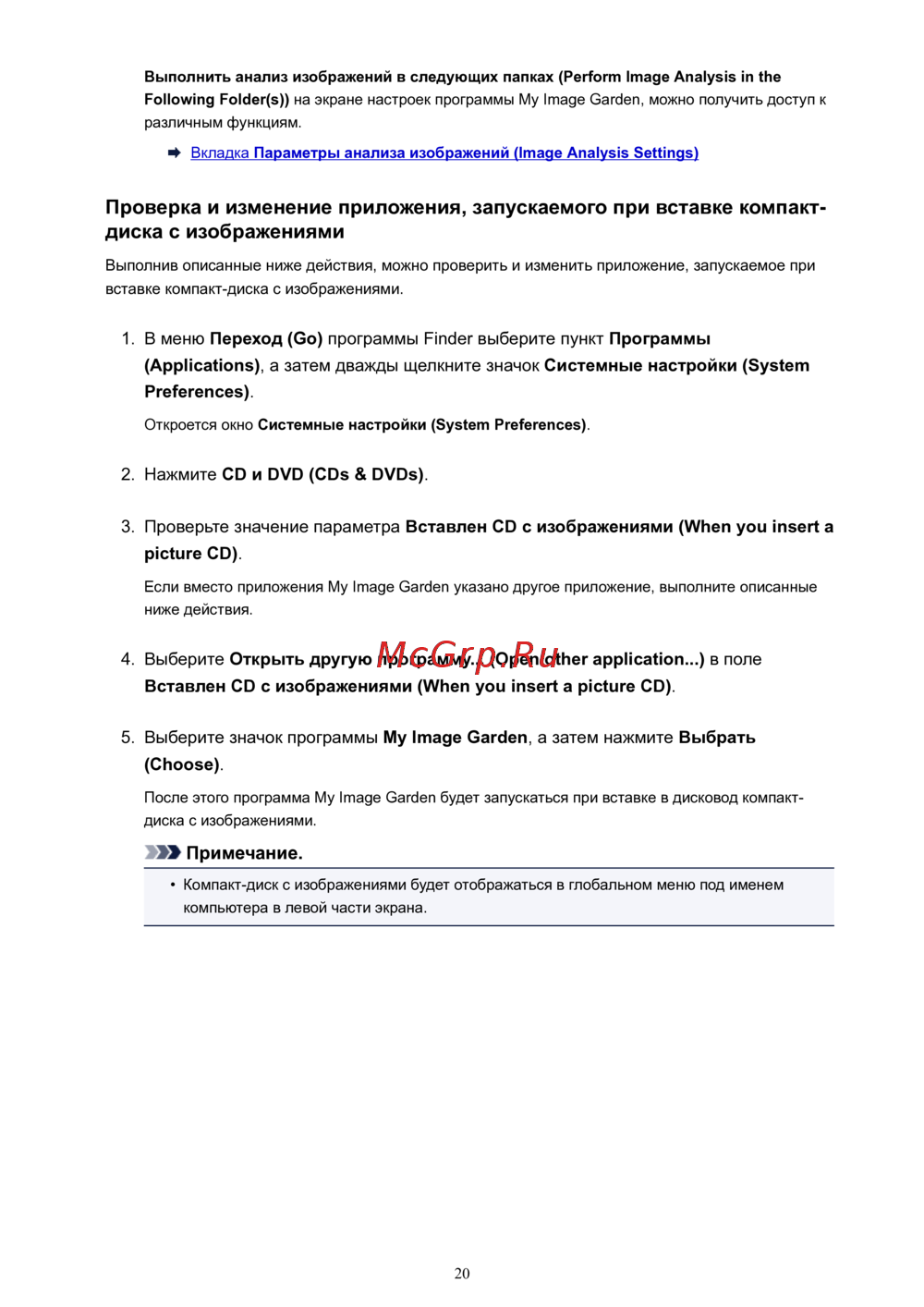 ![Canon MG4140 [20/339] Проверка и изменение приложения запускаемого при вставке компакт диска с изображениями](/views2/1143315/page20/bg14.png)