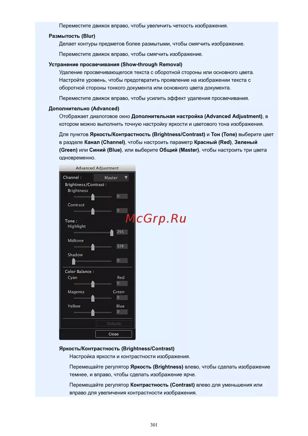 (Green) или Синий (Blue), или выберите Общий (Master), чтобы настроить три цвета