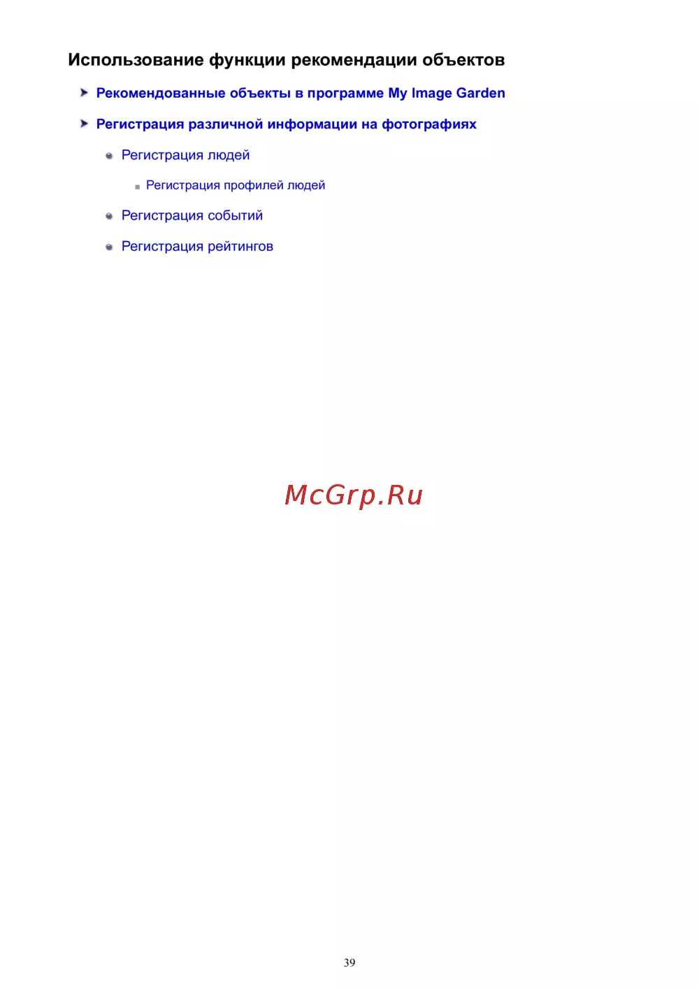 ![Canon MG4140 [39/339] Использование функции рекомендации объектов](/views2/1143315/page39/bg27.png)