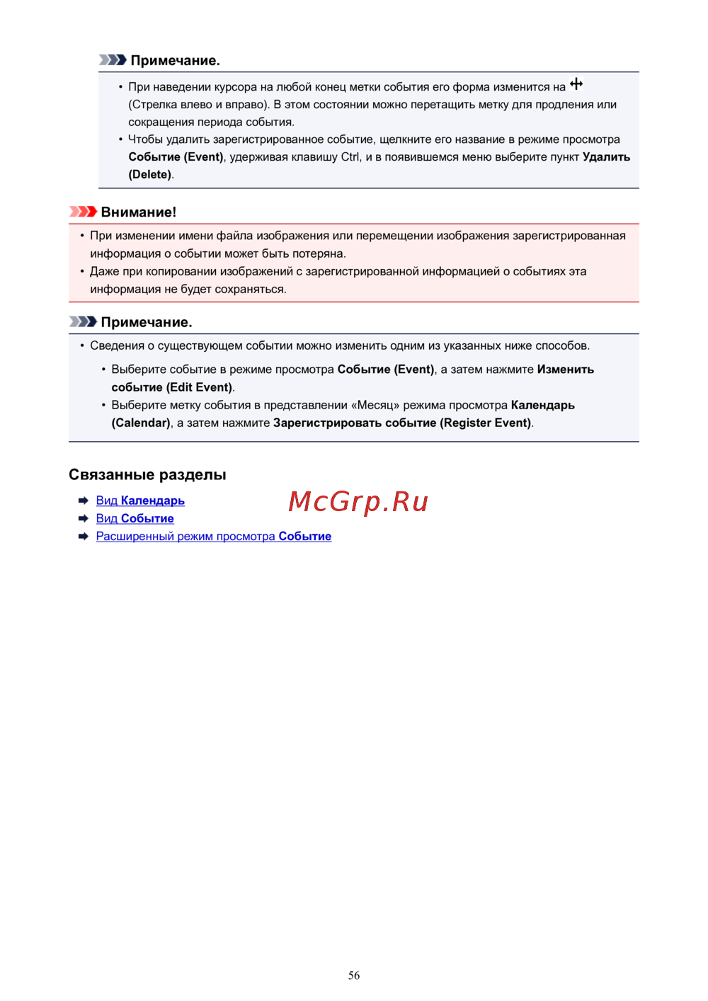 Canon MG4140 — управление событиями: редактирование и удаление меток в календаре [56/339]