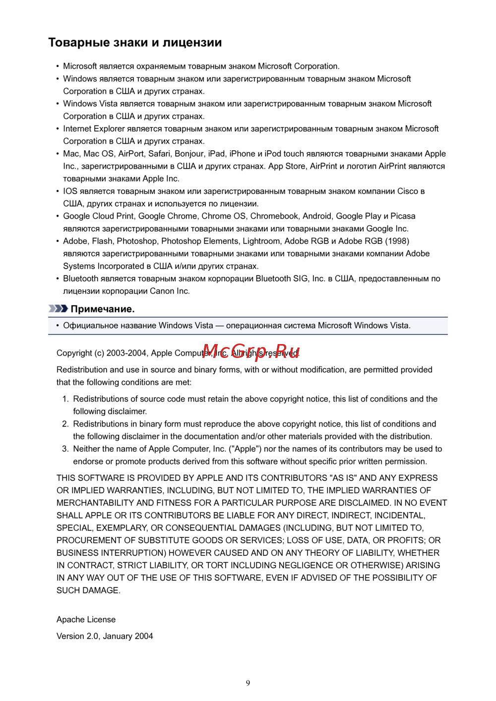 Canon MG4140 [9/339] Товарные знаки и лицензии