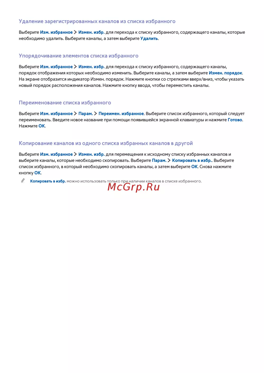 Копировать в избр. можно использовать только при наличии каналов в списке избранного.