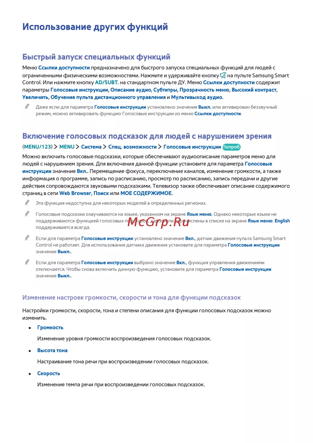 ограниченными физическими возможностями. Нажмите и удерживайте кнопку на пульте Samsung Smart