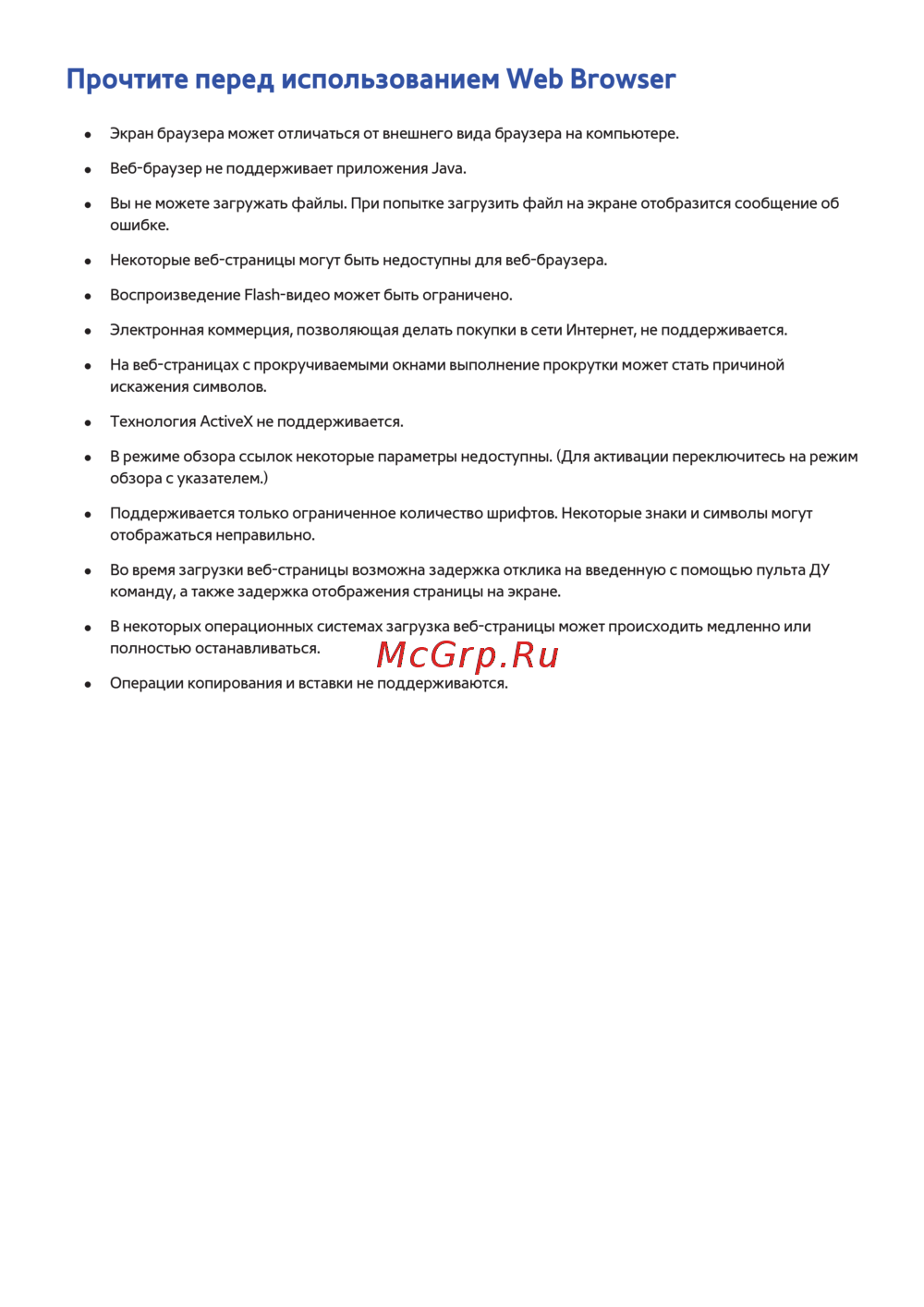 - Во время загрузки веб страницы возможна задержка отклика на введенную с помощью пульта ду команду а также задержка отображения страницы на экране p.177
