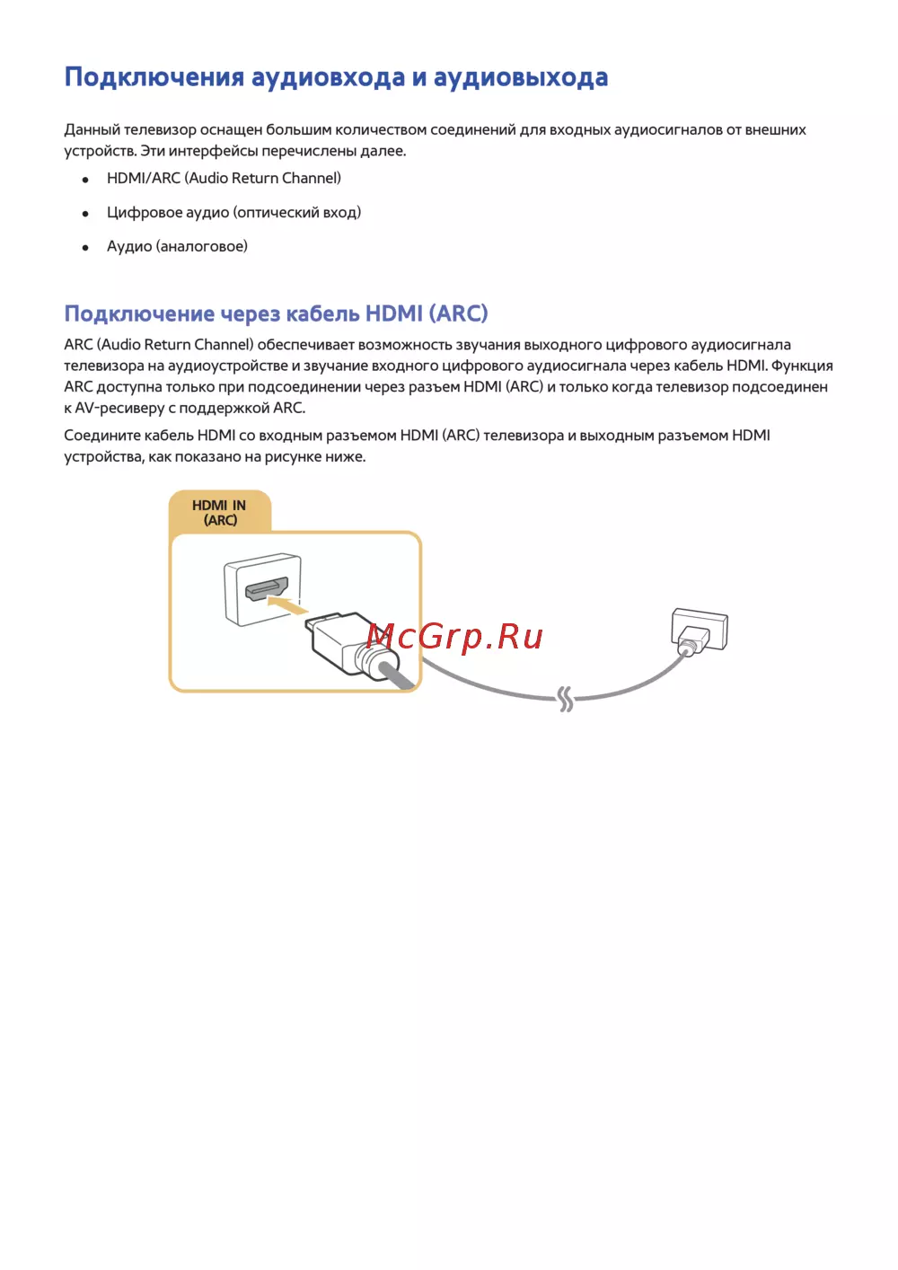 ARC (Audio Return Channel) обеспечивает возможность звучания выходного цифрового аудиосигнала