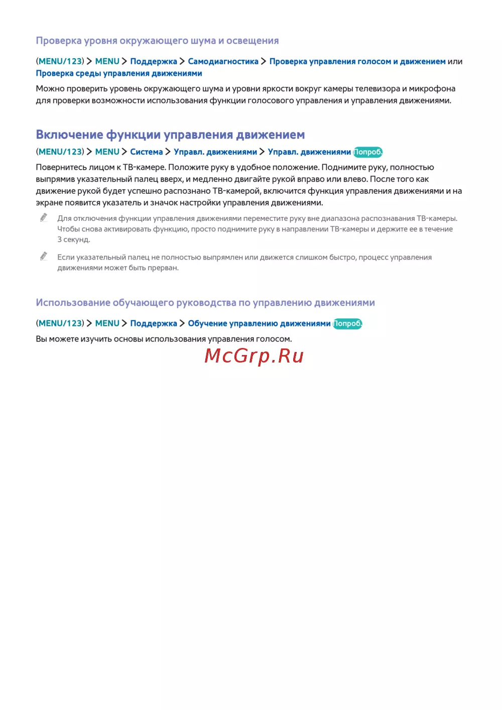 (MENU/123) MENU Поддержка Обучение управлению движениями