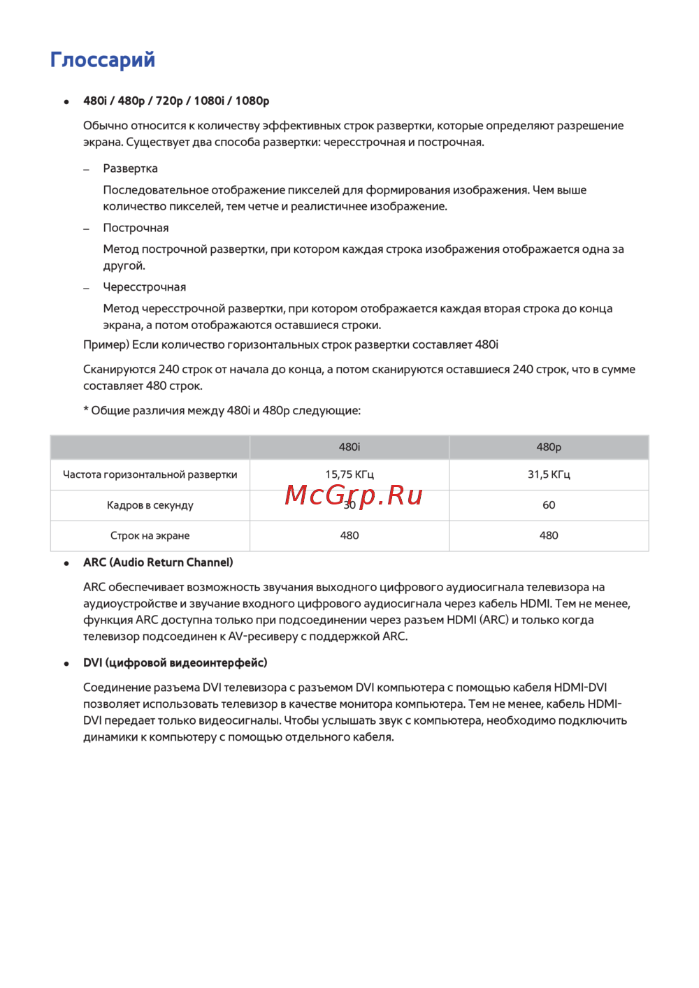 - Если выбрать разрешение не указанное в таблицах это может привести к тому что на экране телевизора не будет изображения или будет включен только индикатор питания p.169
