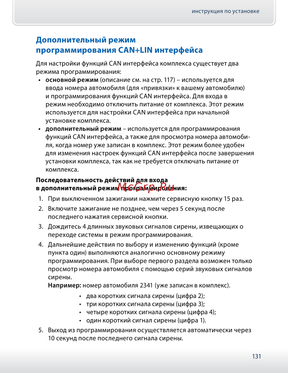 - Прозвучат 7 сигналов сирены подтверждающих вход в режим записи брелков радиоуправлени p.144