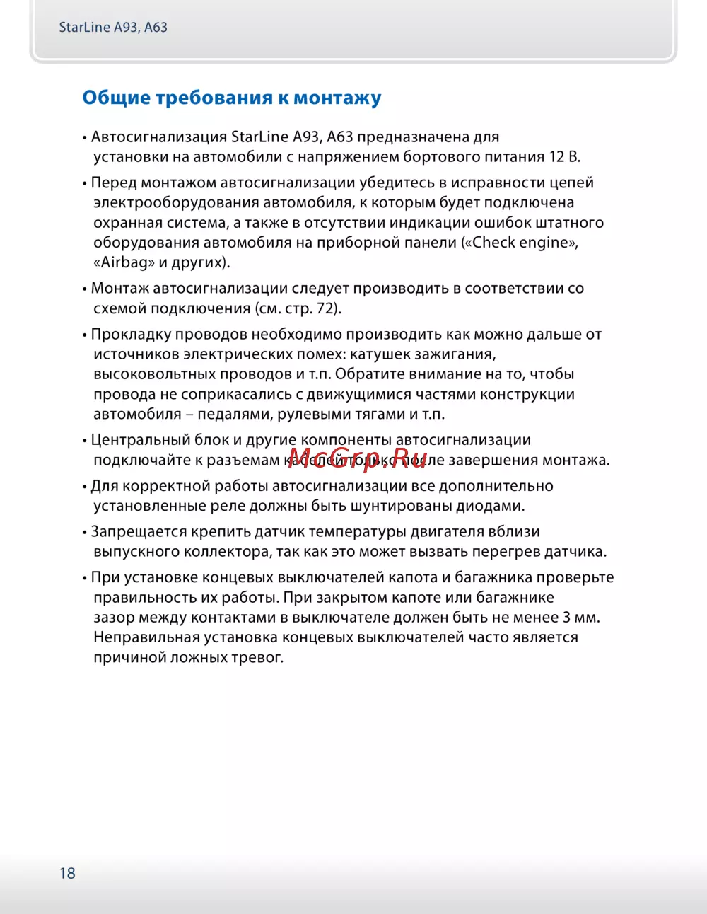 Starline a93 can-lin — общие требования к монтажу автосигнализации для автомобилей [18/157]