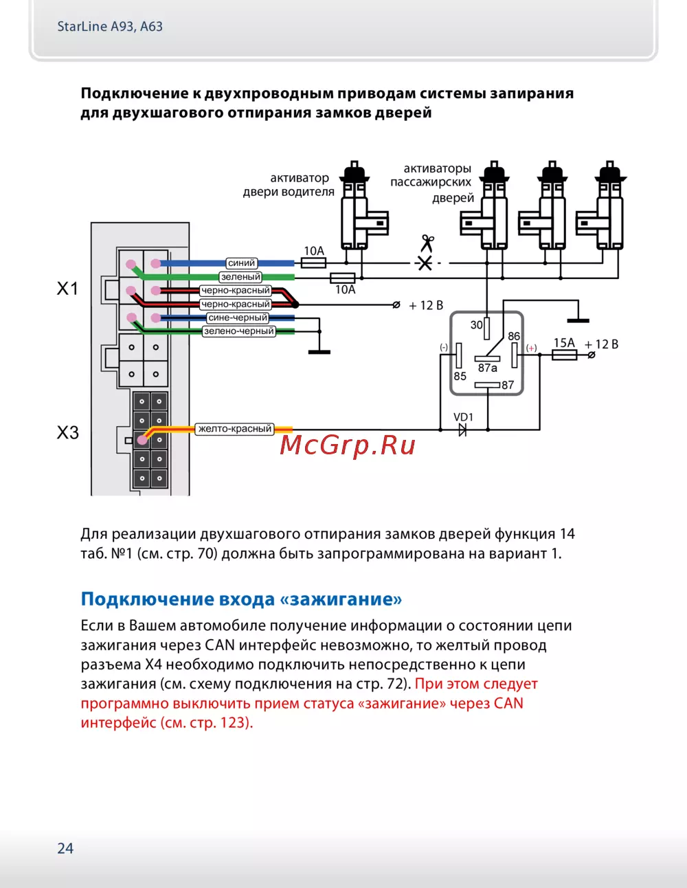 Starline a93 can-lin — подключение двухпроводных приводов для системы запирания [24/157]
