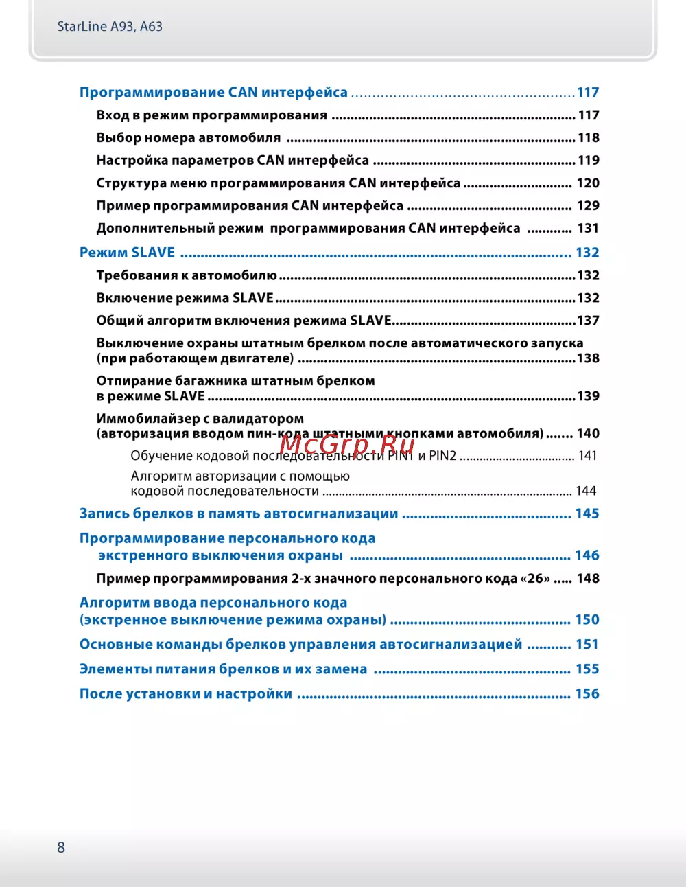 - Запись брелков в память автосигнализации p.145