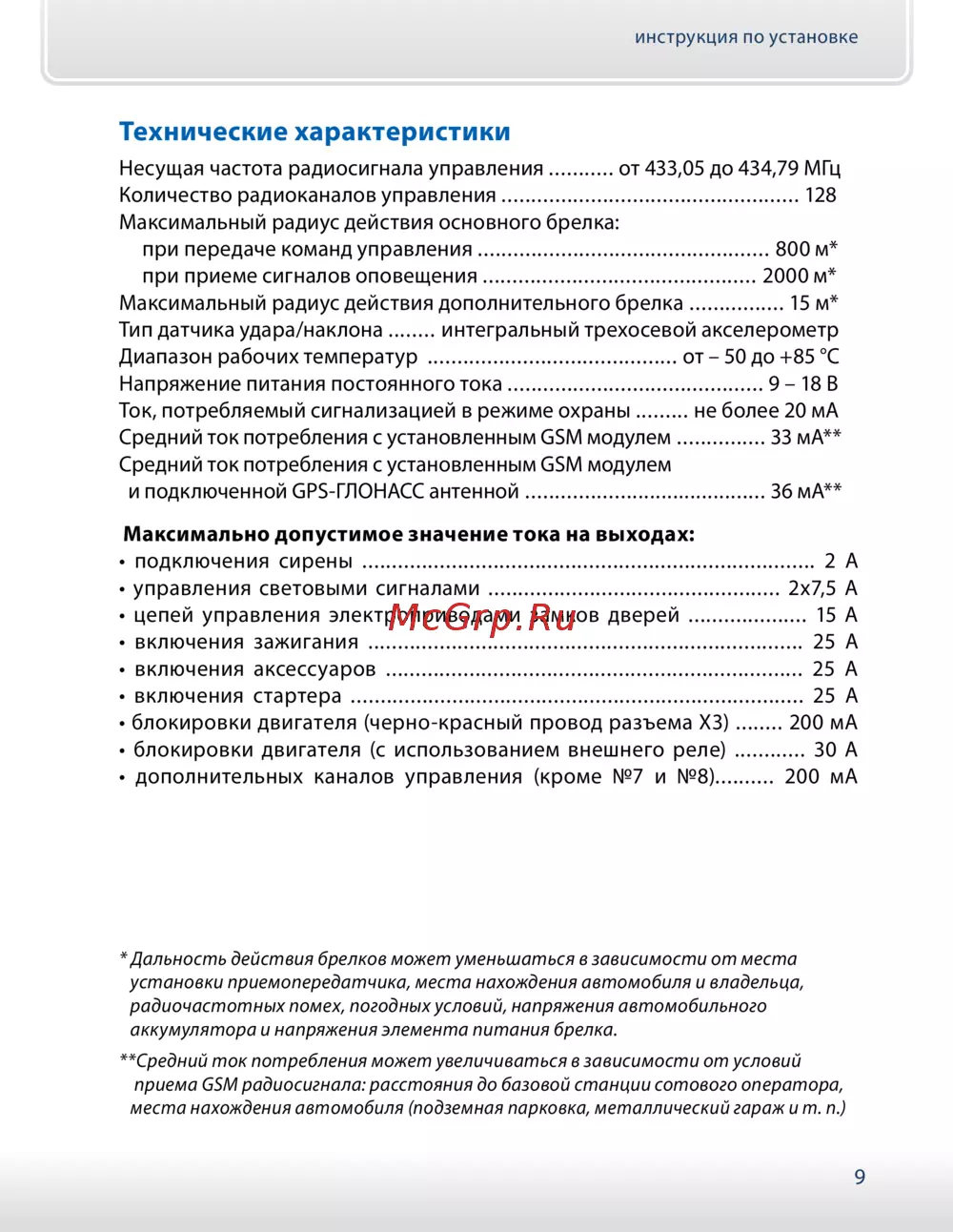 Подробная инструкция по установке сигнализации с техническими характеристиками, включая радиус действия, потребляемый ток и рабочие температуры. Узнайте больше!