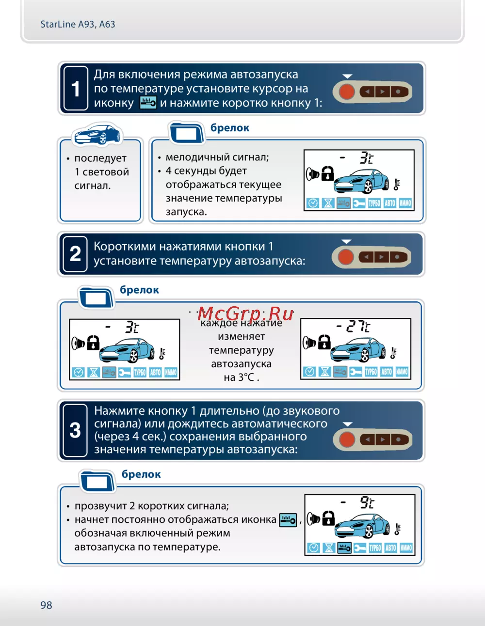 Starline a93 can-lin — автозапуск по температуре: настройка и функции [98/118]
