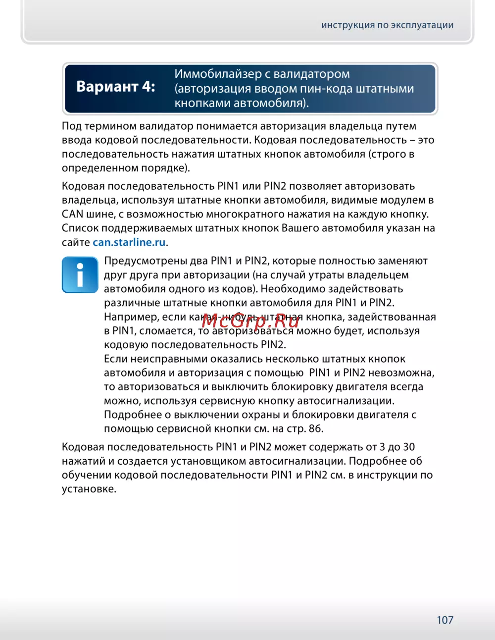 Starline a93 can-lin — инструкция по эксплуатации иммобилайзера с валидатором [107/118]