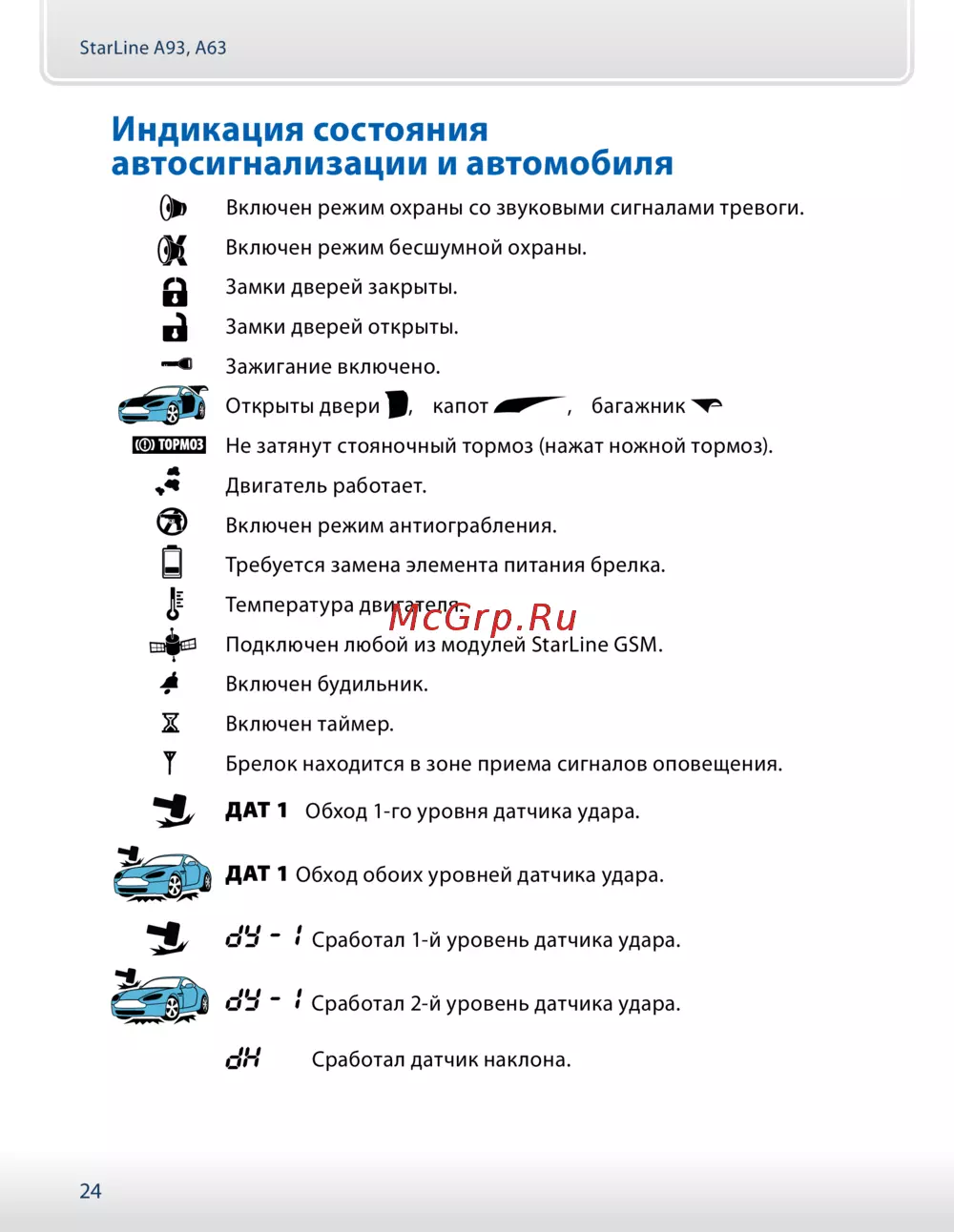 ![Starline A63 [24/118] Индикация состояния автосигнализации и автомобиля](/views2/1178639/page24/bg18.png)