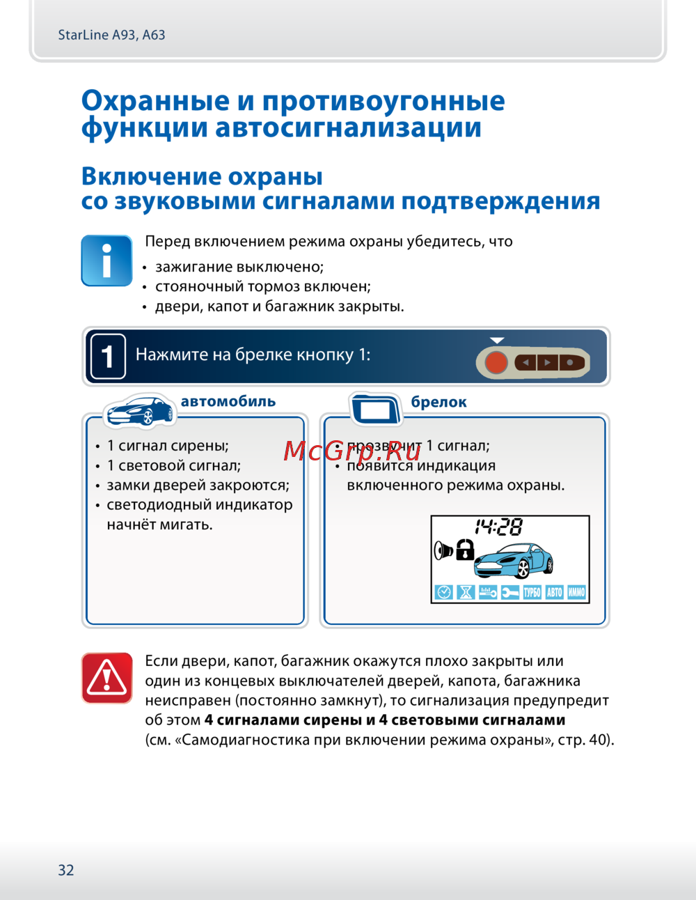 Starline a93 can-lin — охранные функции автосигнализации: как включить режим охраны [32/118]