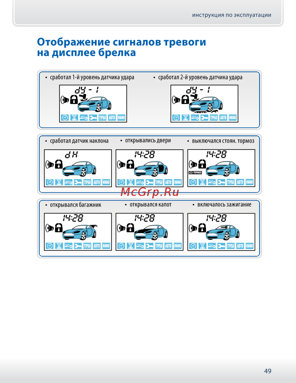 Starline a93 can-lin [49/118] Отображение сигналов тревоги на дисплее брелка