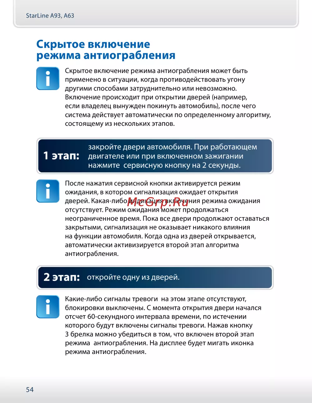 - Замки дверей откроются последуют световые и звуковые сигналы соответствующие выключению режима охраны светодиодный индикатор автосигнализации starline погаснет p.104