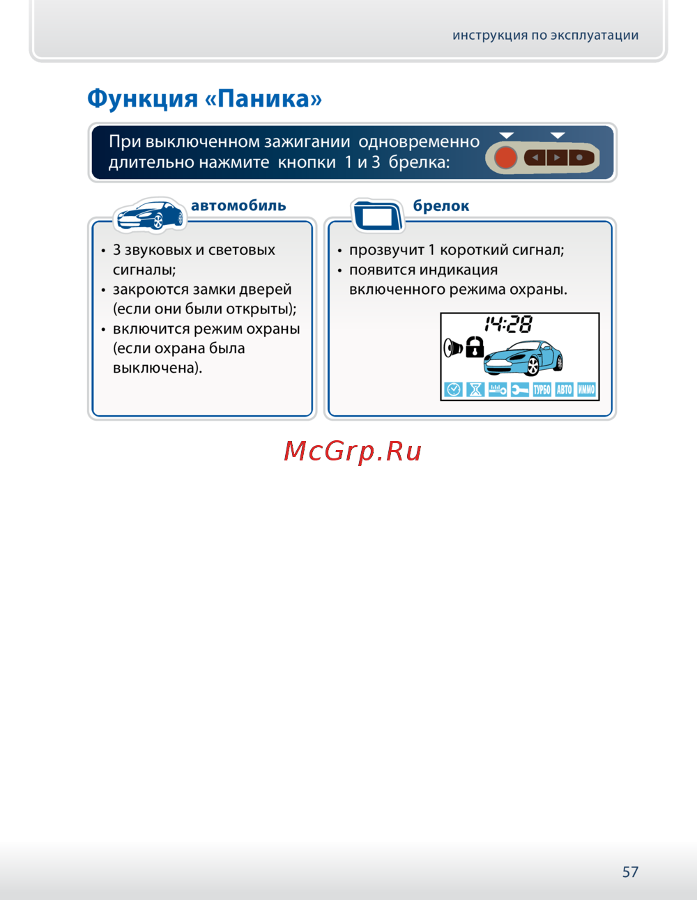 - Для включения выбранного режима нажмите на брелке кнопку 1 p.30