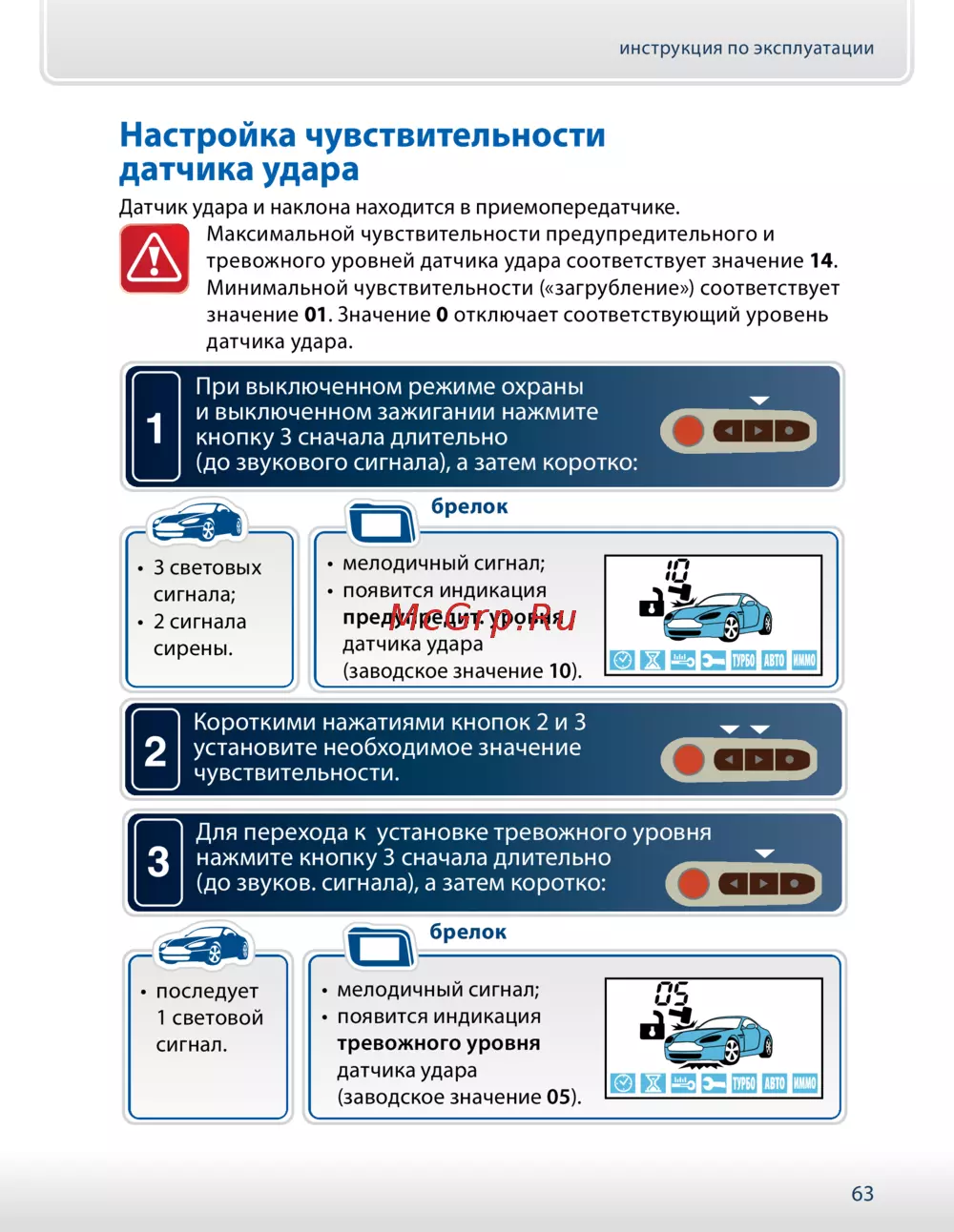 - Команды брелков управления p.19