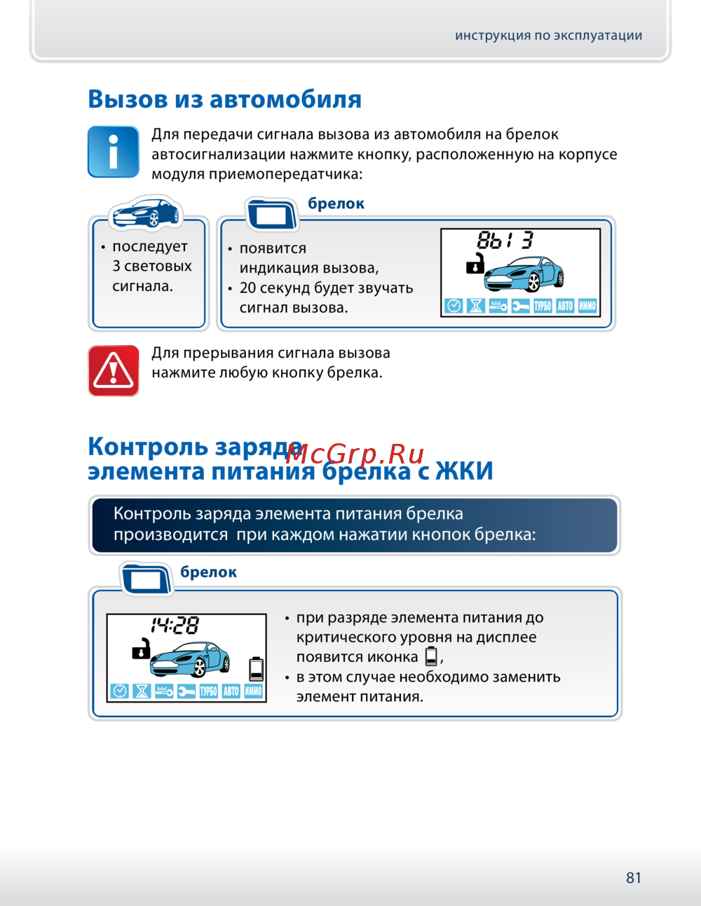 Подробная инструкция по эксплуатации автосигнализации и брелка. Узнайте, как правильно вызывать сигнал и контролировать заряд элемента питания.