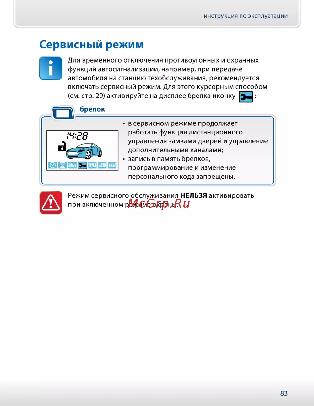- В случае утери метки или её неработоспособности блокировку двигателя всегда можно отключить путем ввода персонального кода автосигнализации с помощью сервисной кнопки см стр 86 p.106