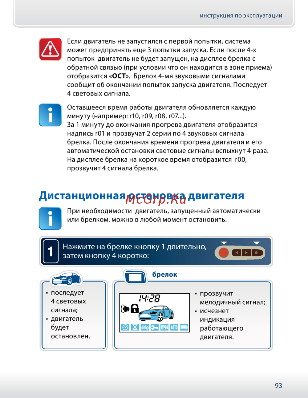 попыток двигатель не будет запущен, на дисплее брелка с