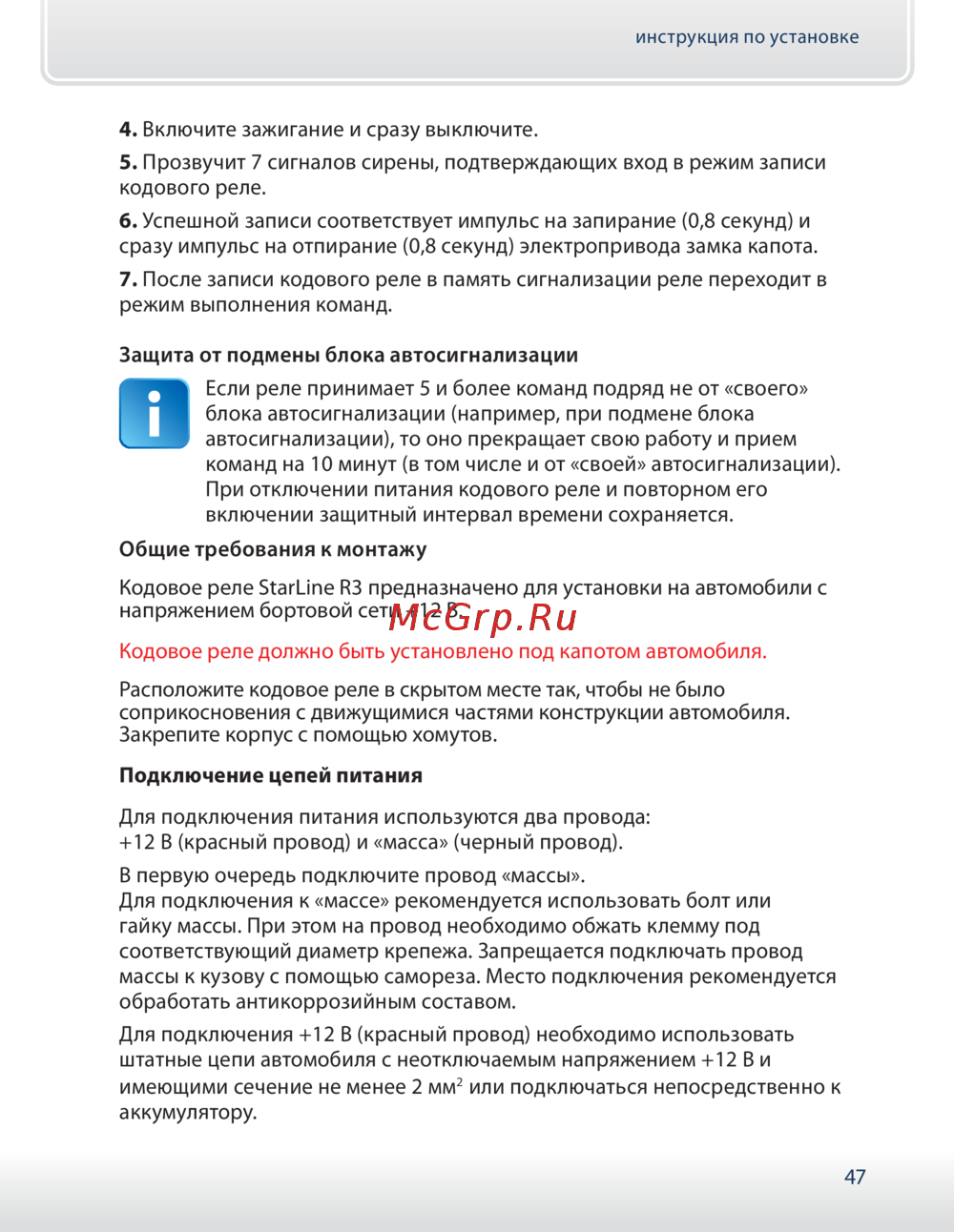 Starline a93 can-lin — инструкция по установке кодового реле для автосигнализации [47/149]