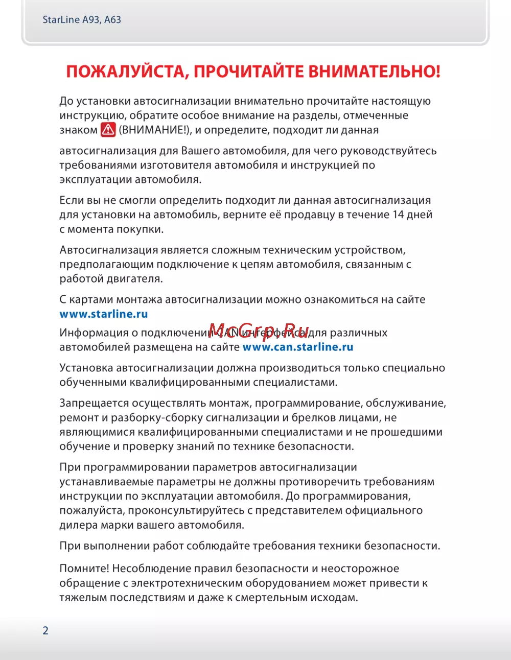 Starline a93 can-lin — инструкция по установке автосигнализации: важные рекомендации [2/150]