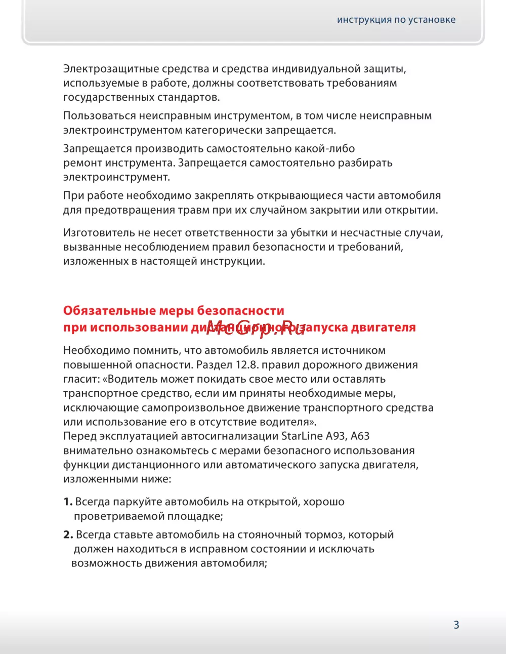 ![Starline a93 can-lin [3/150] Обязательные меры безопасности при использовании дистанционного запуска двигателя](/views2/1188452/page3/bg3.png)
