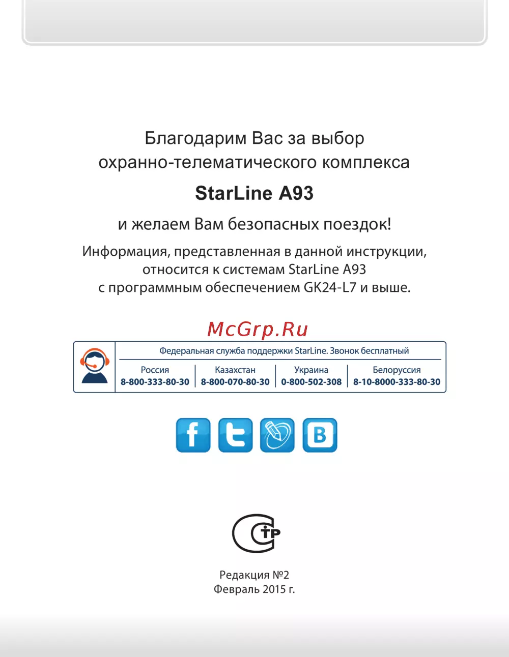 Starline A92 Dialog FLEXРуководство по эксплуатации -