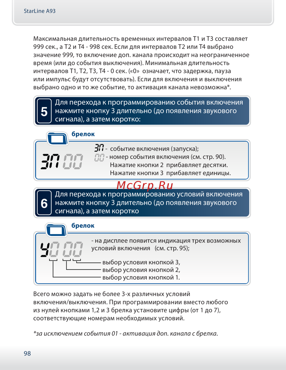 ![Starline a93 can-lin [98/143] Для перехода к программированию события включения нажмите кнопку 3 длительно до появления звукового сигнала а затем коротко](/views2/1188458/page98/bg62.png)