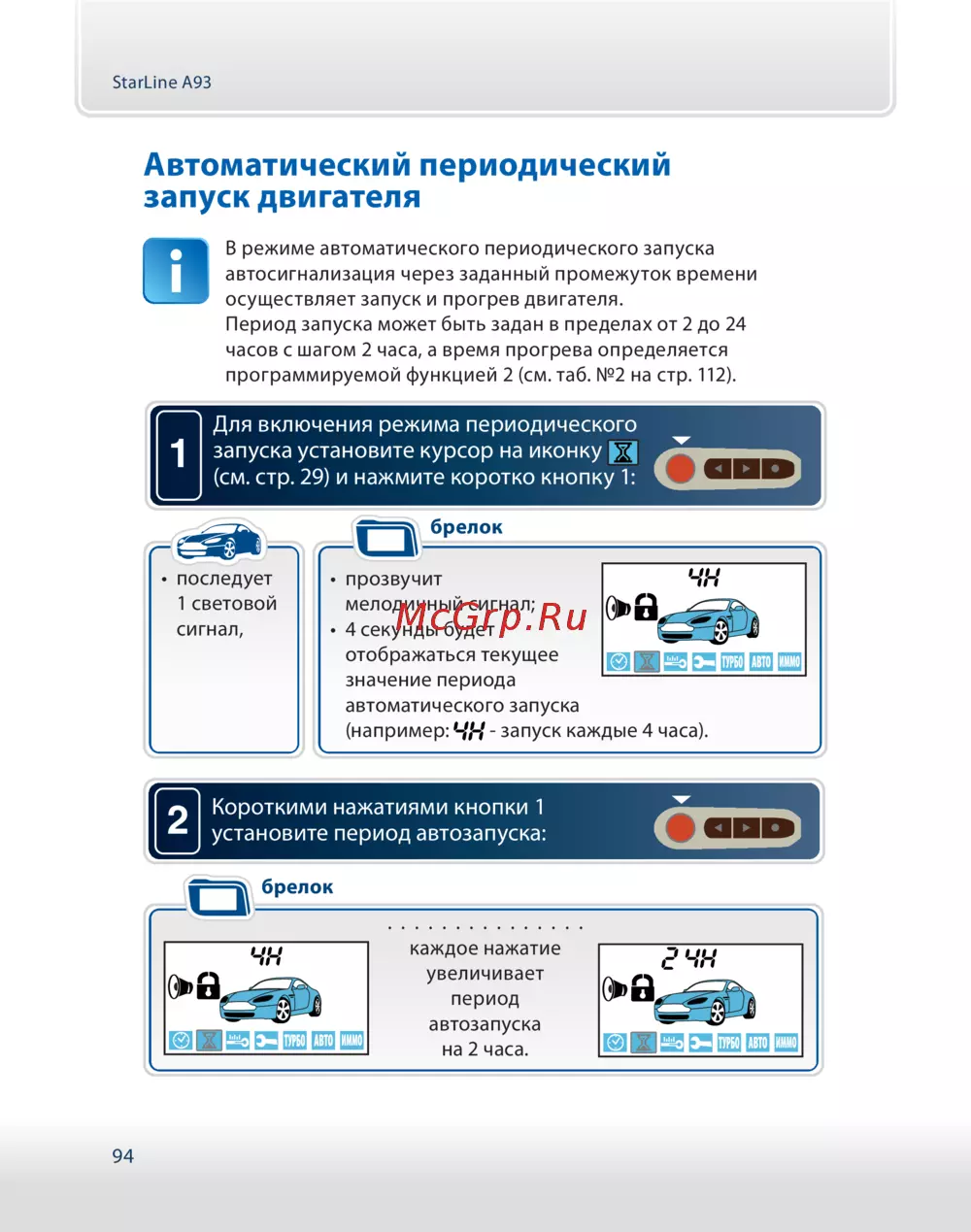 ![Starline a93 can-lin [94/115] Короткими нажатиями кнопки 1 установите период автозапуска](/views2/1188459/page94/bg5e.png)