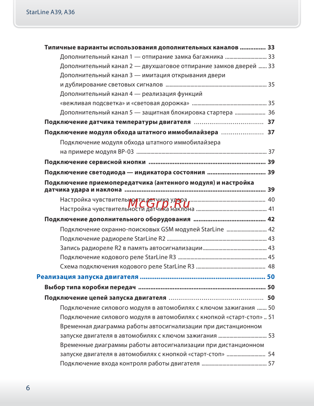 Подключение охранно-поисковых GSM модулей StarLine ............................. 42