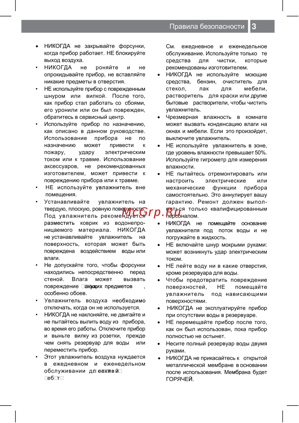 Shivaki SHHF-4031W — правила безопасности при использовании увлажнителей воздуха [4/13]
