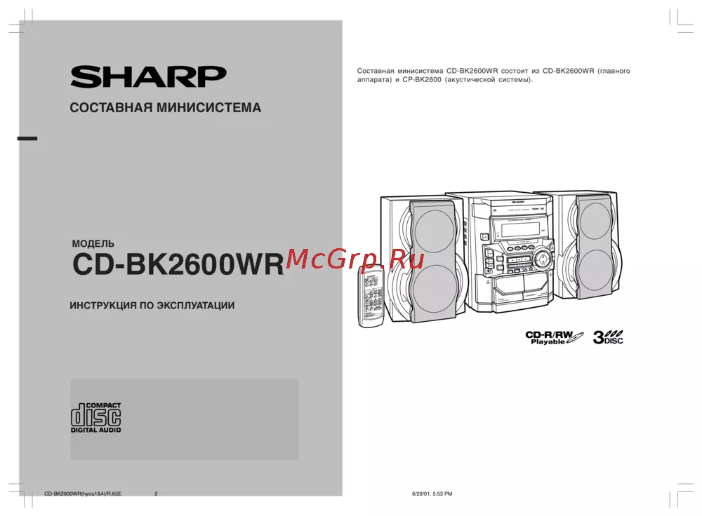 Sharp CD-MPX100HRИнструкция по эксплуатации