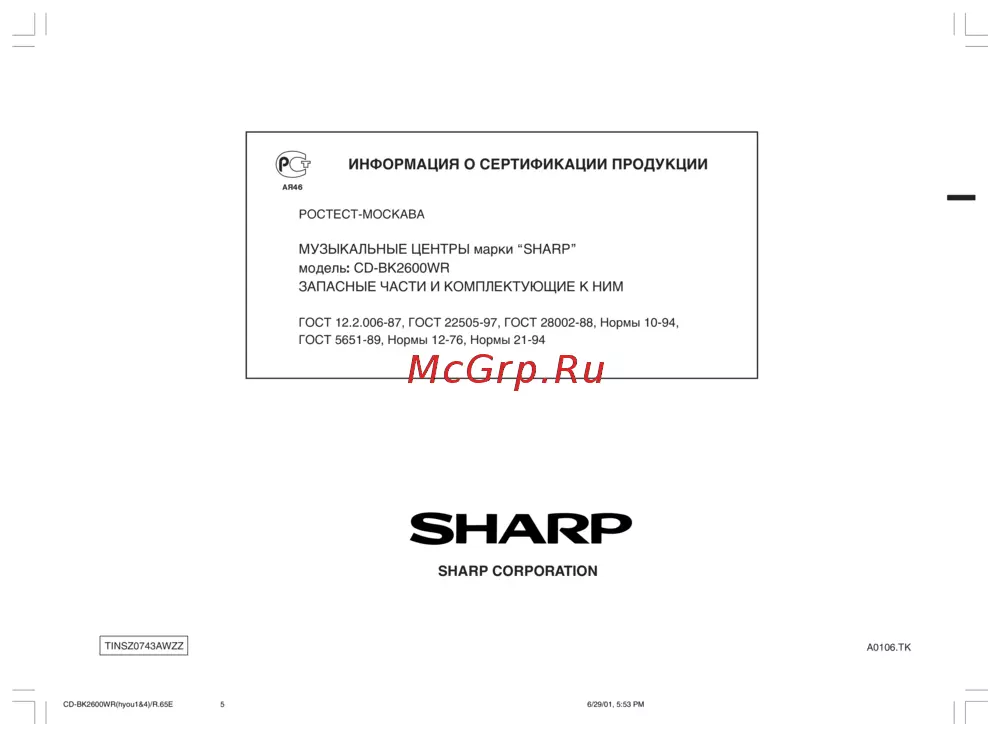 Sharp CD-BK2600WR [36/36] Информация о сертификации продукции