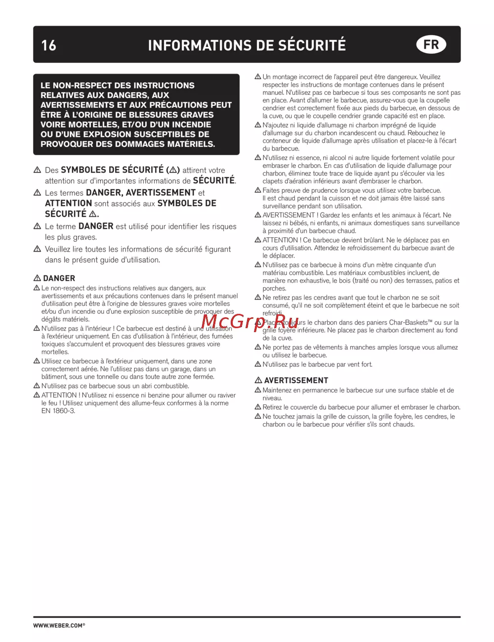 Weber original kettle 1246304 47см [16/84] Est utilisé pour identifier les risques les plus graves veuillez lire toutes les informations de sécurité figurant dans le présent guide d utilisation